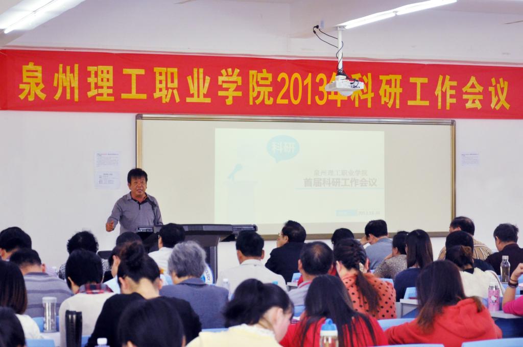 10月30号下午2点,在学校领导的高度重视和各部门的大力支持下,泉州理工职业学院2013年科研工作会议在教学楼238多媒体教室顺利召开,会议由副校长于雷主持,与会人员有学校领导、机关全体中层干部、教学系部正副主任...