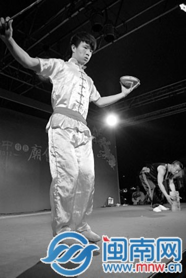 陈泽毅表演“踩鸡蛋” 表演完,鸡蛋无好无损 N海都记者 庄奕烨 海都讯 “转茶杯”“踩鸡蛋”“踩火柴盒”……在泉州理工学院,大二学生陈泽毅有好几手“演金绝活”,...