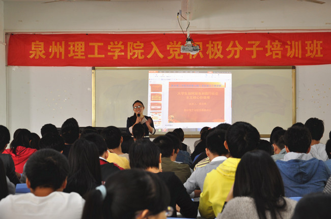 为加强对党的发展对象的教育与培养,全面提高党的发展对象的理论素养,11月8日,泉州理工学院第十九期入党积极分子培训班在教学楼238教室开班授课。本次培训班共有12级、13级、14级以及教师入党积极分子共187名学员参...