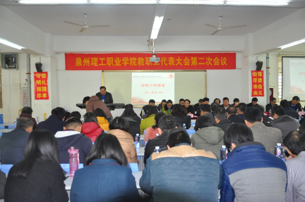 臧校长会上作报告 臧校长为获奖者颁奖 吴滨如副董事长作工作报告 全体教职工代表合影 为了“进一步深化教育教学改革,全面提高经济新常态下人才人才培养质量。”1月19日,泉州理工学院...