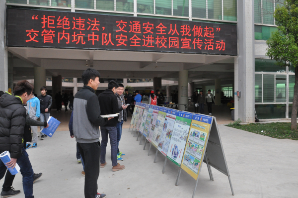 我校学生阅读道路交通安全法 民警为我校学生派发交通安全宣传单 我校学生正在做酒精测试 3月5日,晋江市内坑镇交通管理警察中队民警走进我校,以“拒绝违法,交通安全从我做起”为宣传主题...
