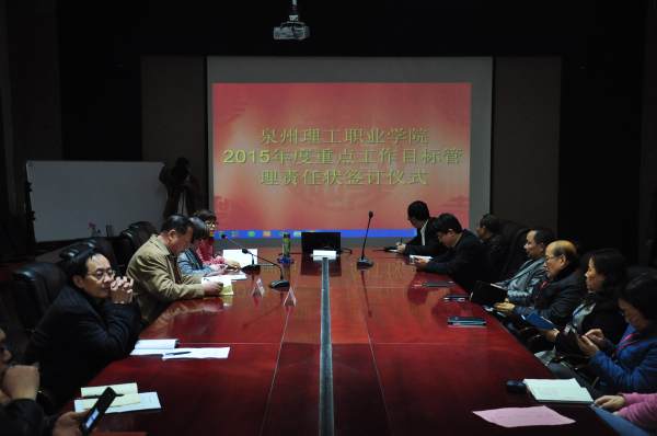 全校领导,各院系、各部门负责人及中层以上领导干部参加了仪式 校长臧树良代表学校与车辆工程系、校工会签订责任状 校长臧树良代表学校与通识教育中心签订责任状 校长臧树良发表讲...