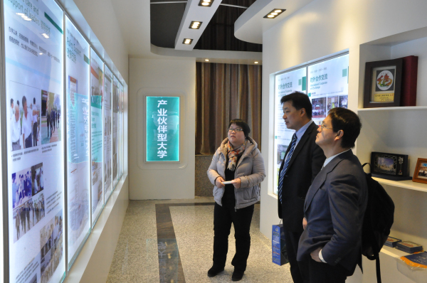 参观校史馆 观看宣传片 “机器人”课程的介绍 合影 12 月 30 日上午,台湾建国科技大学国际交流处副处长陈铉文、台湾建国科技大学信息与网络通讯系陈俊华博士到我校就机械智能制造合作项目...