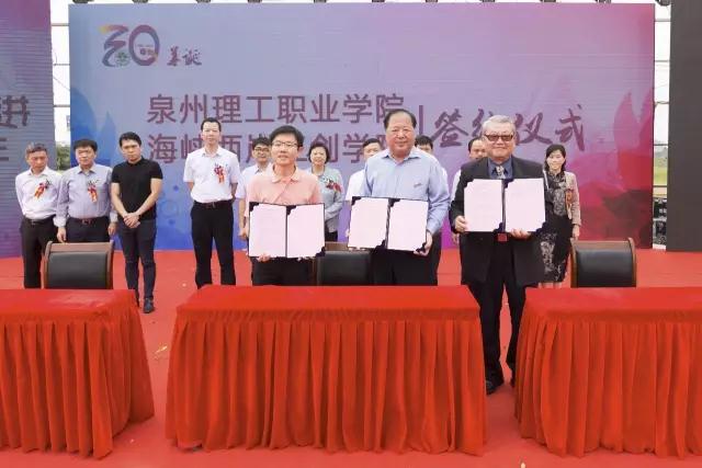 日前,为进一步深化学校创新创业教育改革,融合“创业者的摇篮”育人定位与对台交流优势,我校隆重举行海峡两岸创意创新创业学院(简称“海峡两岸三创学院”)签约仪式。学校臧树良校长、晋江市三创办蔡金星主任、台...