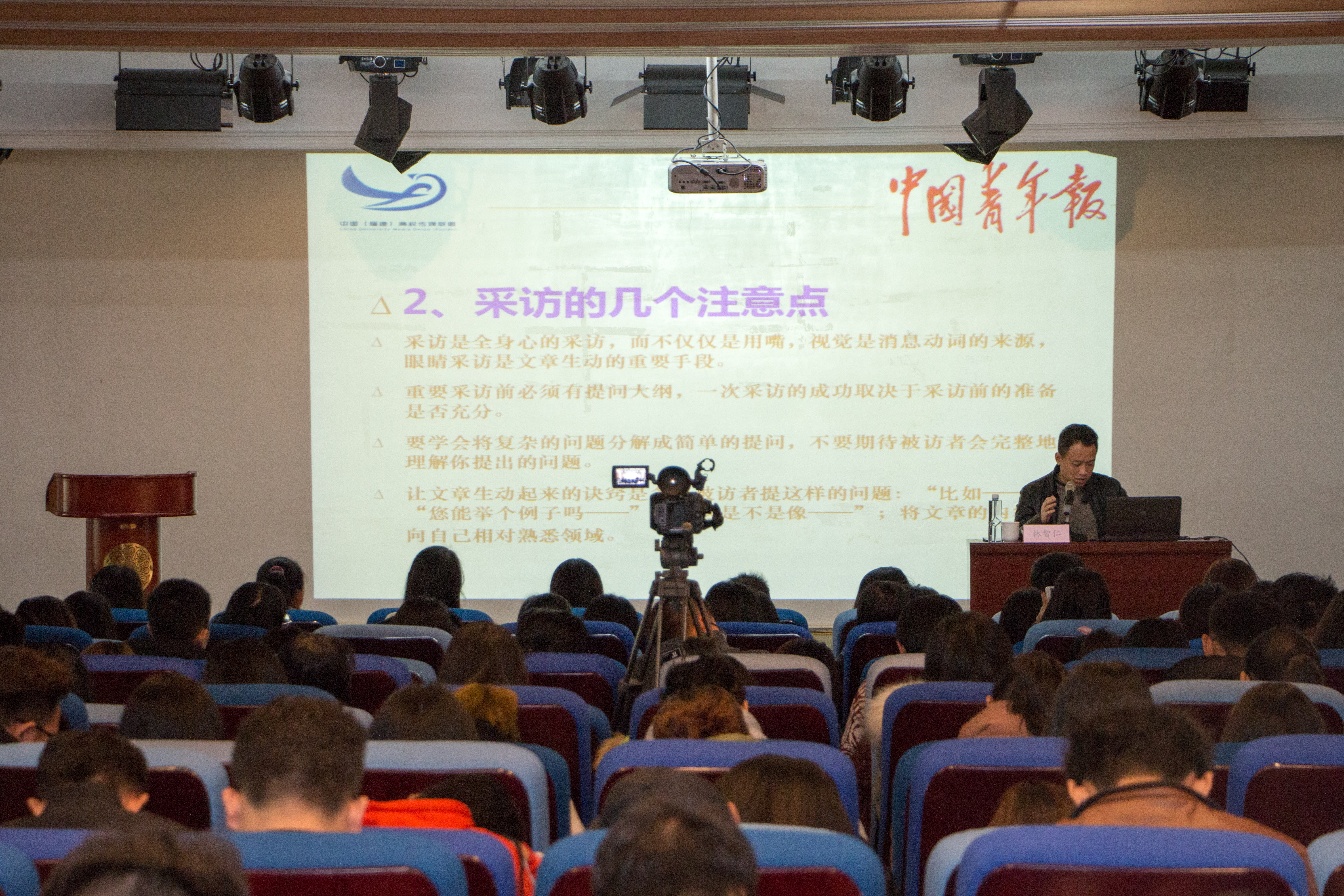 12月21日下午,校宣传部邀请了中国青年报记者、福建高校传媒联盟秘书长林智仁来到我校,以《如何把有意义的事写得有意思》为讲座主题,为我校师生宣传员讲解了如何写好校园新闻。 林记者用自己的成长经历,分享...