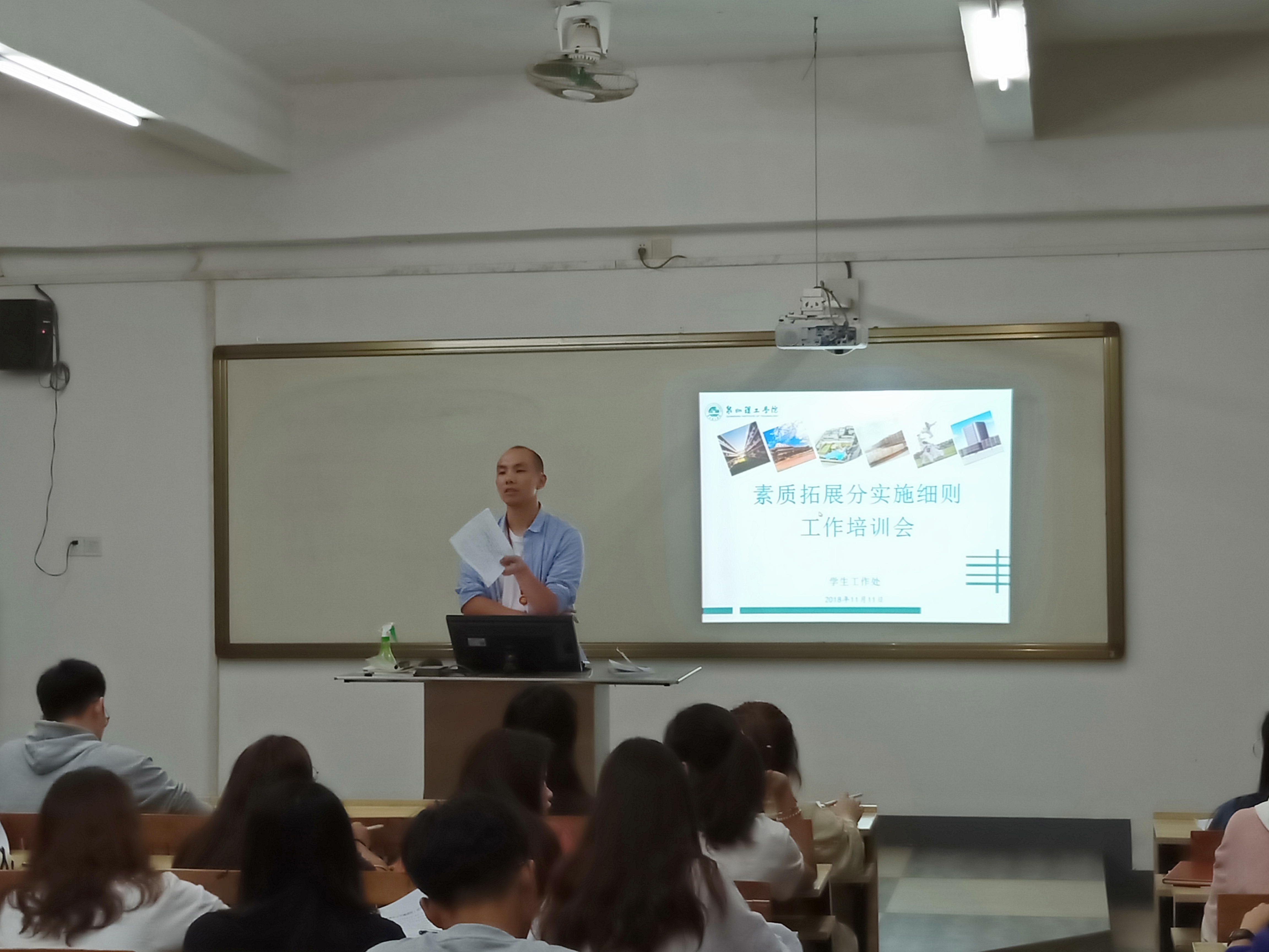 11月11日晚,学工处于261教室组织召开2018-2019学年素质拓展分实施细则工作培训会。校团委副书记兼学工处副处长黄胤聪、各单位相关负责人以及2018级全体团支书共同出席本次会议,会议由学工处沈伟兵主持。 “作...