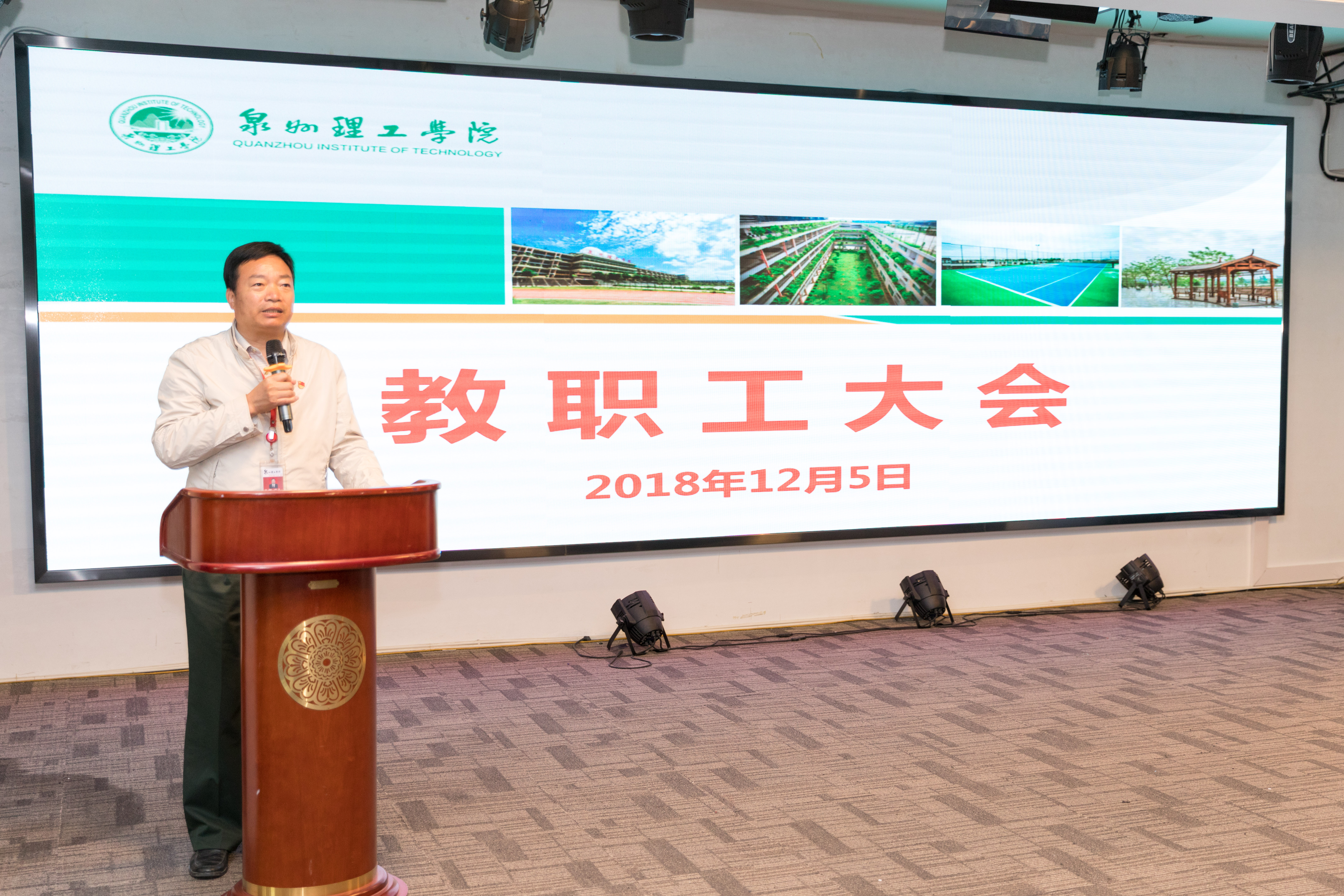 12月5日下午,我校举行全体教职工例会。副校长蔡金佩对2018年招生工作做总结汇报并对2019年的招生工作作详细部署,今年的招生工作在很大程度上实现了新的突破,各种力量形成合力,他希望各学院要继续加强学科专业建设...