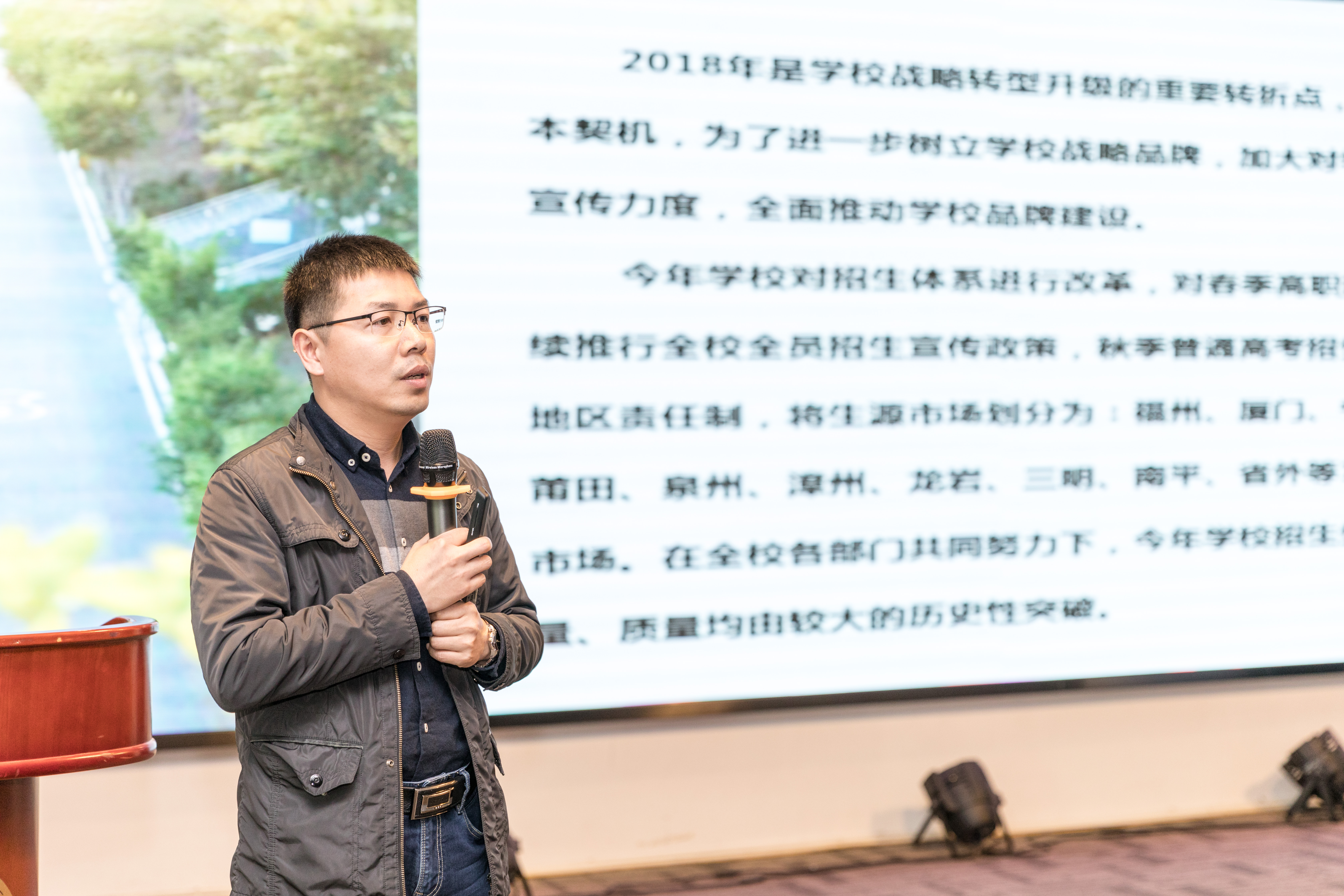 12月5日下午,我校举行2018招生总结暨2019年招生部署工作会议,全校教职工参加此次会议。 蔡金佩副校长对2018年招生工作做了总结汇报,对招生录取、新生报到、生源结构做了详尽深入的分析,他强调,我校今年的招生...