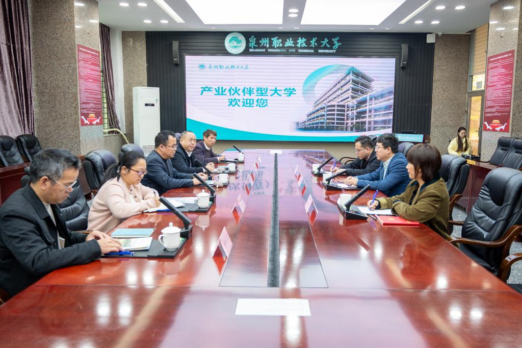 3月21日,泉州工艺美术学院副校长李联益一行莅校交流参访,我校副校长郭霏霏全程陪同,党政办、科研处相关负责人参加活动。李联益一行先后参观了我校生态校园沙盘、校史馆、艺术设计展厅、直播基地、数智产教融合展厅、众创空间、新能源汽车产业学院等,对我校在产教融合建设及国家级晋江市域产教联合体方面取得的成果表示肯定。座谈会上,郭霏霏对李联益一行的到访表示热烈欢迎,并简要介绍了我校在历史沿革、办学特色、校企合...