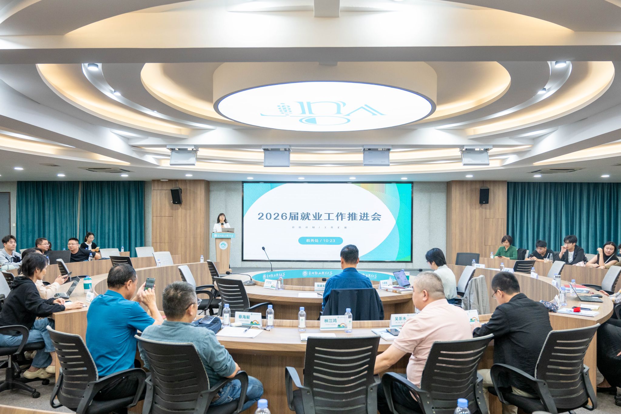 10月23日,泉州职业技术大学召开2026届就业工作推进会,总结2025届就业工作并为2026届毕业生就业工作谋篇布局。副校长张建军、郭霏霏,校长助理、教务处处长苏康敏,教务处及各二级学院领导、专业负责人、辅导员参加会议。会上,就业指导中心主任陈丹花回顾了2025届就业工作总体情况,从初次毕业去向落实率、落实率月度目标达成率、就业对口率、留泉就业率、高质量就业率等核心维度,对各学院就业工作成效进行深入剖析。随后介...