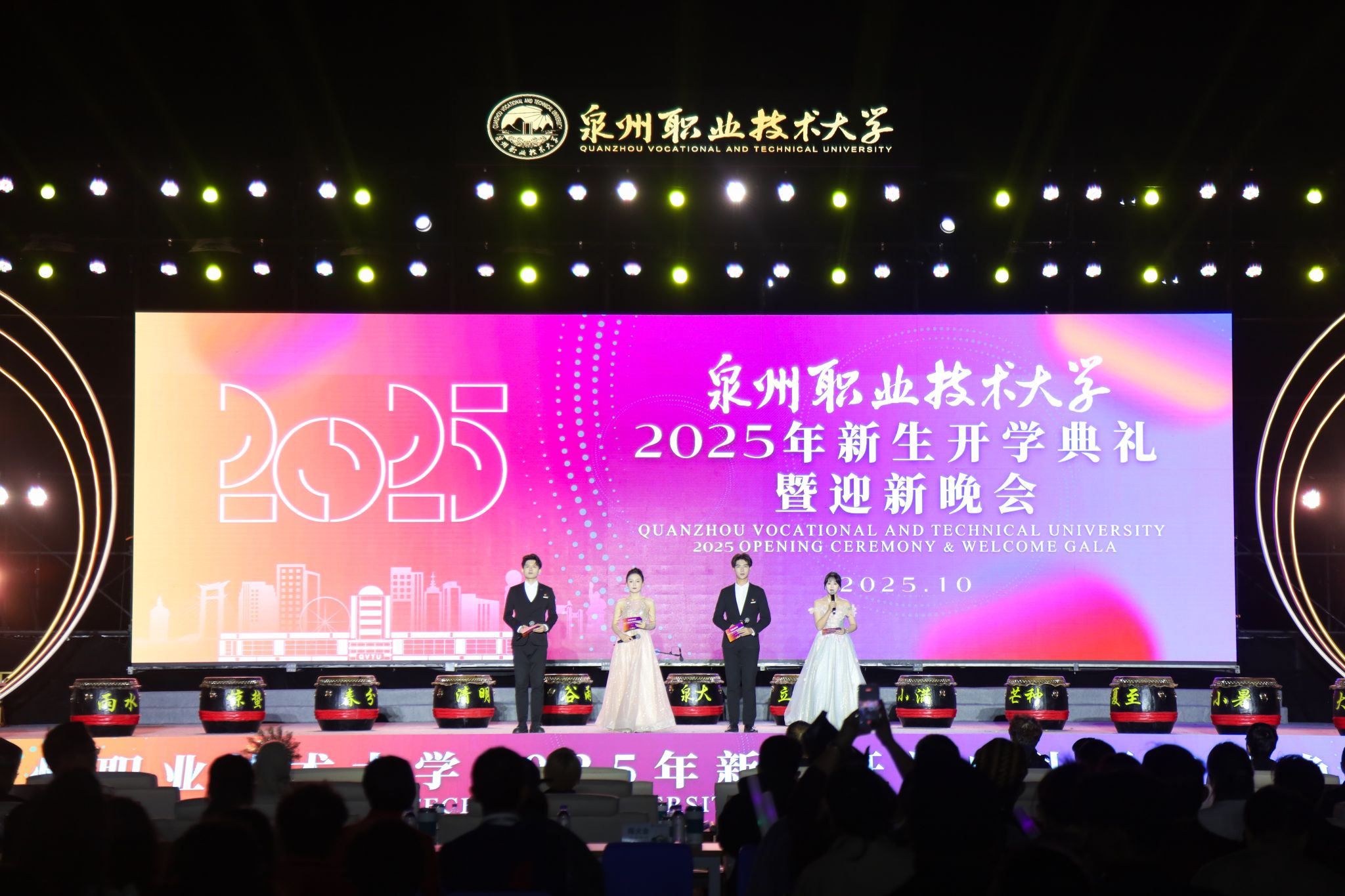 金秋时节,青春飞扬4161名新生从五湖四海汇聚泉大在“宋元中国·海丝泉州”的沃土在"晋江经验"的发源地共同开启崭新人生篇章!10月22日晚上,伴随绚丽的灯光和动感的音乐,泉州职业技术大学2025级新生开学典礼暨迎新晚会在校园内隆重举行,青春活力的节目开启了新同学的泉大生活新篇章。受邀出席典礼的政府、学校代表有:厦门大学电子科学与技术学院党委书记石慧霞、泉州市高教发展中心主任黄永东、晋江市内坑镇人大主席吴松江、...