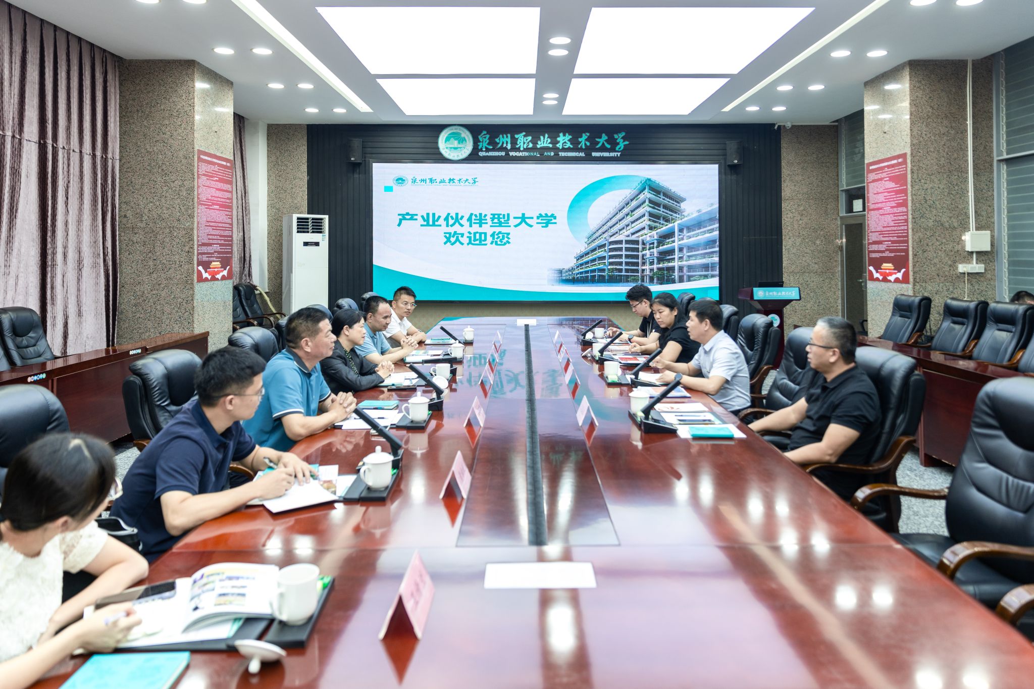 10月24日,泉州市人民政府副市长姚飞一行到泉州职业技术大学调研学校国际化办学。泉州职业技术大学校长吴滨如、党委副书记/副校长蔡金佩、副校长林文艺、校长助理/教务处处长苏康敏等陪同调研。姚飞一行实地考察我校电商直播基地、艺术设计展厅、石油化工实训基地、行云新能源汽车产业学院、艺术工坊等,并与学校领导进行座谈。座谈会上,吴滨如以《推进产教城融合的泉职大实践》为题作汇报,系统汇报学校的基本情况、办学特色...