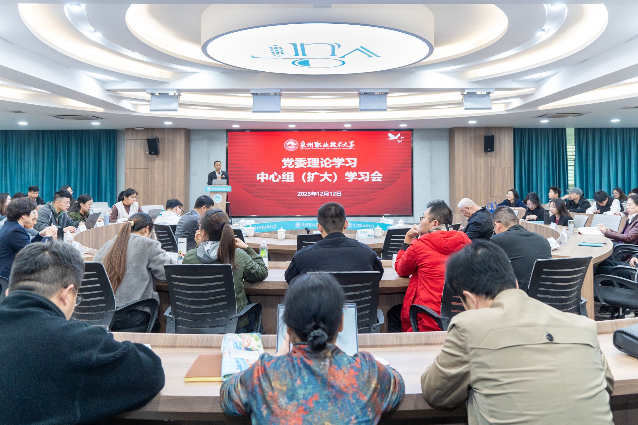 12月12日下午,学校在A301会议室举行泉州职业技术大学党委理论学习中心组(扩大)学习会。学校领导班子成员、各基层党组织书记、马克思主义学院全体教师、全体思政辅导员和学生党员代表参加学习会。党委书记傅志雄主持会议。会议邀请到中共福建省委党校(福建行政学院)经济学教研部副教授程梦瑶博士作《深学笃行党的二十届四中全会精神 勇担“十五五”现代化新使命》专题报告。程梦瑶副教授理论功底深厚,长期深入教学科研一线...