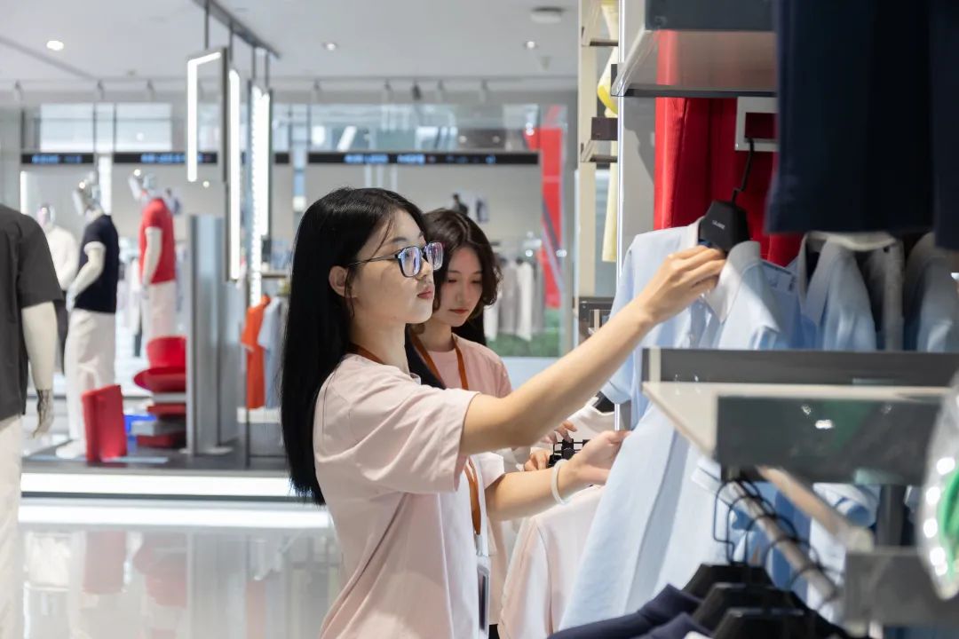 利郎轻商务展厅店长助理周蓥介绍,此次12名学生的实训组长都是参与过10次以上订货会的优秀职员,同学们从中可以学到良好的沟通能力、组织协调能力、应变能力和细节把控能力,“同学们整体表现积极,值得期待,只要大家有求知的欲望、不断学习的心态、积极向上的活力,相信会取得更大进步。”周蓥希望即将进入实习环节的同学能够更加主动学习行业企业相关知识、培养用户思维、进一步锻炼职业化素养,“艺术传媒学院服装专业工作室一体化教学新模式培养的学生,进入利郎后能快速适应工作环境,希望未来能有更多泉大学生加入利郎。”
