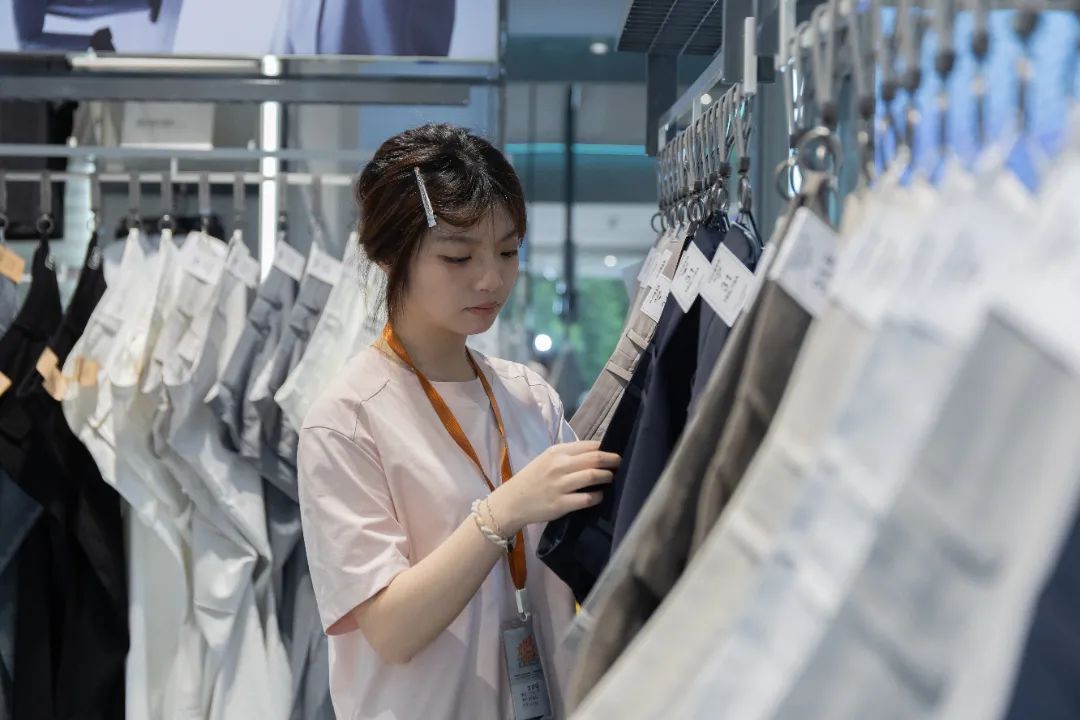 “参加订货会实训,让我深刻体会了团队协作和随机应变的重要。”2022级服装与服饰设计专业学生李克坚说,订货会期间他负责42件新品的陈列与推介,“这和以前在教室的学习不同,我每天要和来自全国各地的区域经理、店长打交道,现场要能准确高效地向他们介绍各个新品的面料、功能、特点。15天实训,我每天都写了满满的工作复盘,这让我对所学知识和真实工作有了更深刻的理解,收获很大。”