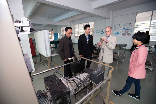 希弗先生首先参观了校史馆,了解了学校31年的办学历程及成果,还参观了数字媒体工程中心、汽车实验室、智能制造工程中心、LOTI时尚学院、卫生用品学院等。随后,校领导在第一会议室与希弗先生一行进行座谈交流,校党委委员、工学院院长陈其生向希弗先生介绍了我校工学院汽车类专业群建设发展情况。