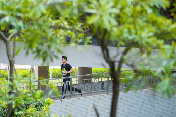 原来,爱跑步的董事长吴金营,在校园建设时,特地把学校的所有楼栋连接起来,既遮阳又避雨。特别是教学楼的环绕走廊有6米宽,一层楼一圈下来就有1公里左右,6层楼上下就有12公里,不仅能够行车,而且还是师生们风雨运动场。同时,墙体建设时,泉理工还很注重环保,施工过程中,所有建筑废渣经二次加工后全部作为施工材料,实现绿色施工。“每一层楼的跑道上,都种满美丽的绿色植物,在这里空中跑道上赛跑,真的很享受。”汤幼文说得很开心。