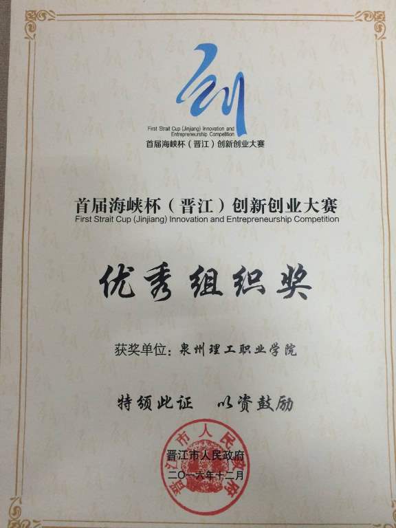 据悉,首届海峡杯创新创业大赛由福建省晋江市人民政府主办,共在晋江、北京、江浙、北美举行了四大专场海选,吸引了国内外633个优秀创业项目参加角逐,40%的参赛项目均有博士参与,11.2%项目来自海外创业团队,国际化水平、技术水准、商业价值都远超国内同等级赛事。此次大赛,我校广泛宣传、积极组织,共选派22个优秀团队参赛,其中19项作品经过海选进入大赛参加路演,得到了评委的好评。我校能在众多团体中获得优秀组织奖,来之不易,极大鼓舞了全校师生,也是对我校三创工作的一个鞭策,必将更大程度上推动我校三创工作的发展。