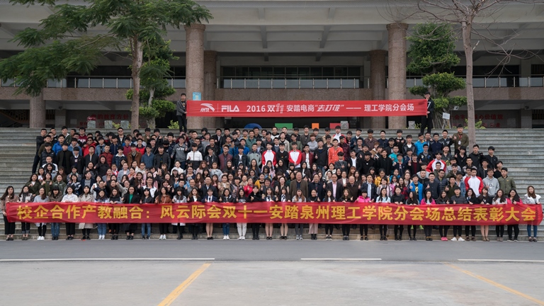 今年“双十一”期间,485名泉州理工学院商学院学生变身做起了“店小二”, 助力安踏集团,取得优异成绩。昨日(28日),风云际会“双十一”——安踏集团、泉州理 工学院职场体验总结表彰大会召开,这群可爱的“店小二”受到安踏集团及泉州理工学院的 表彰。