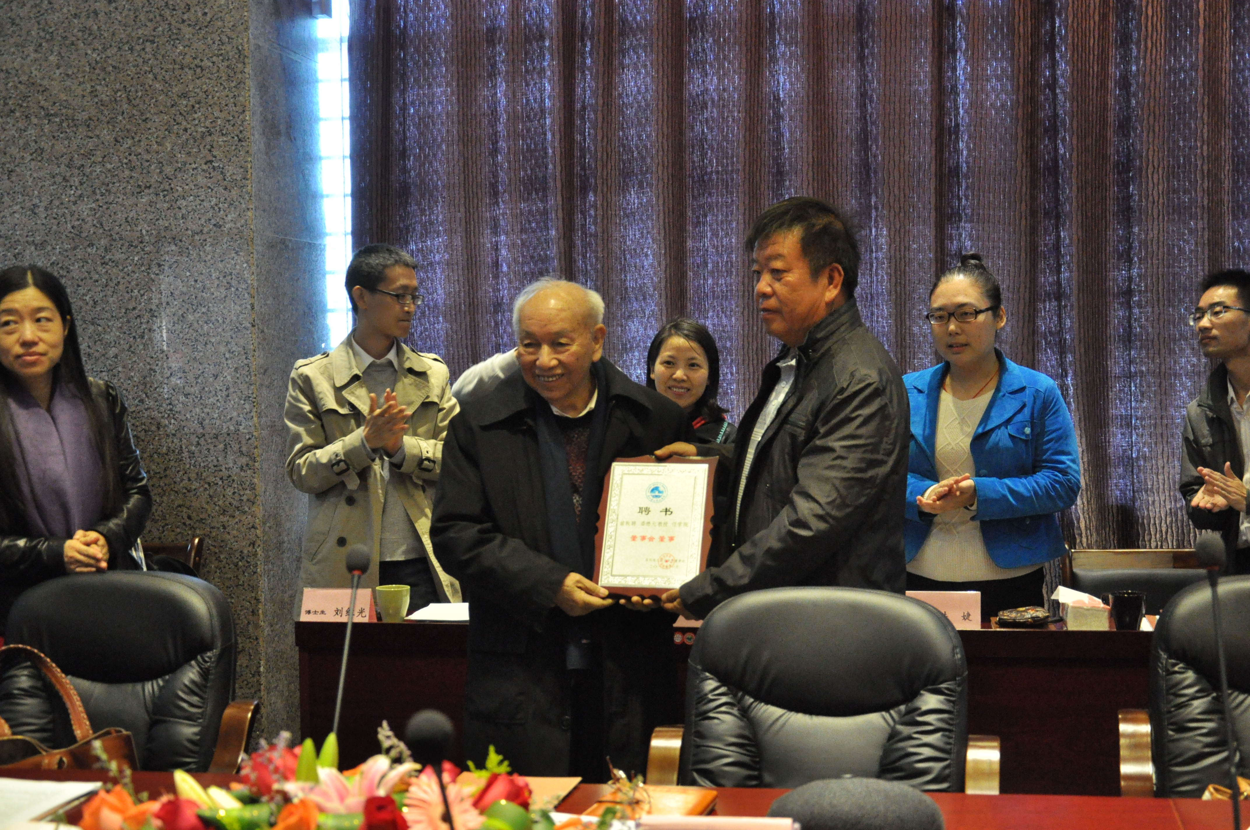 会议上,泉州理工职业学院创办人、董事长吴金营先生向潘懋元先生颁发聘书,聘请潘懋元先生担任学院的董事会董事,以感谢潘先生多年来对泉州理工职业学院重视、支持和关心,并期待在未来的战略发展方面能得到潘先生持续到位的指导。