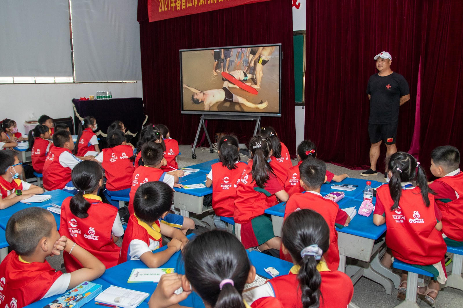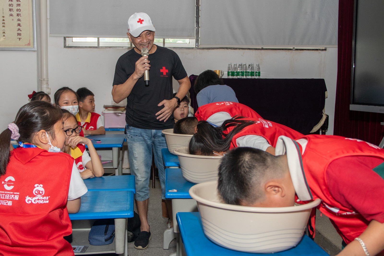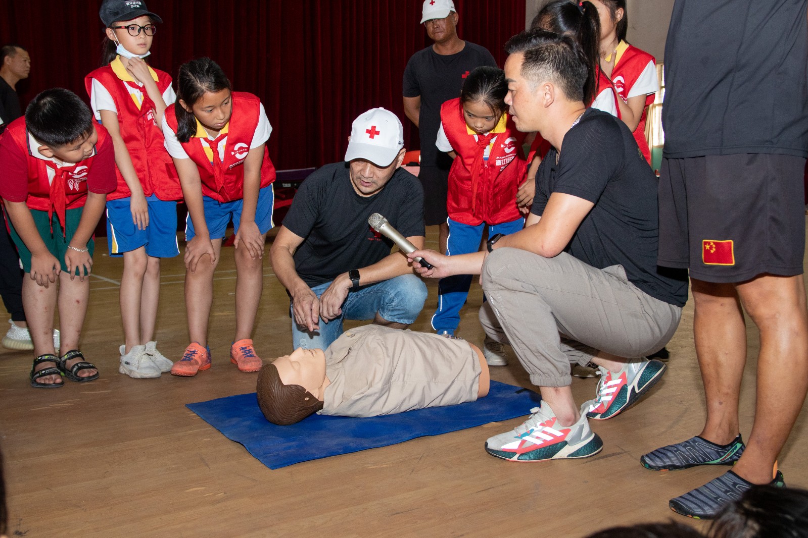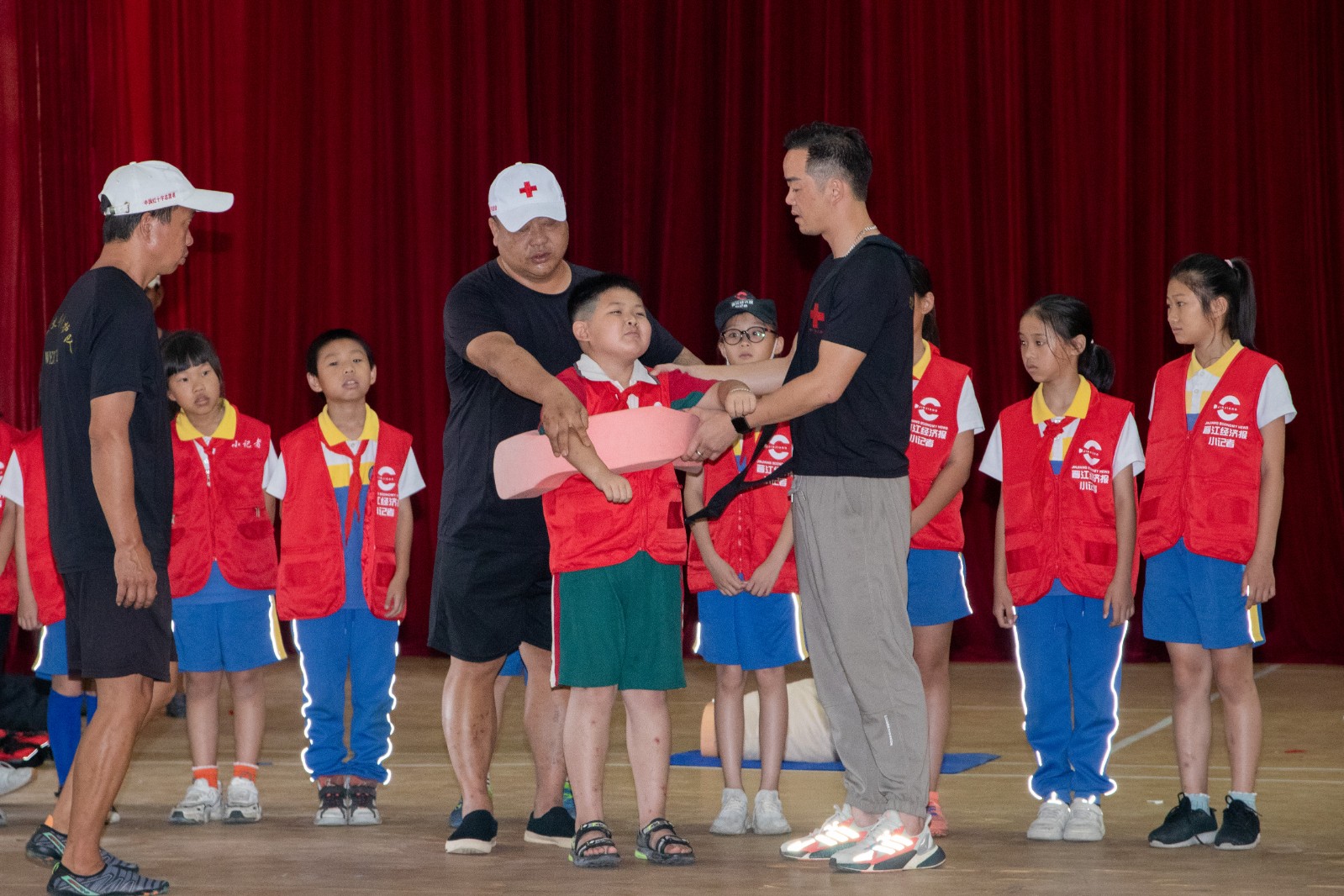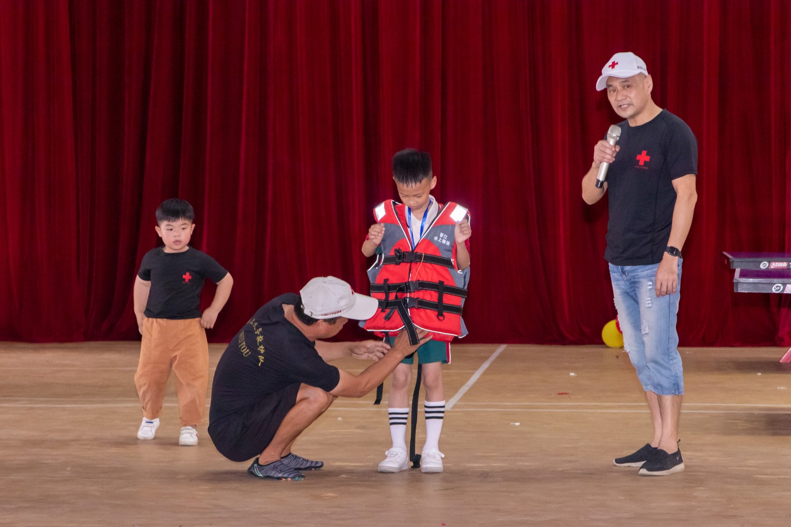 活动邀请晋江市红十字会围头海上义务救护队队长吴聪敏来到围江学校,向大小记者讲述了他和义务救护队的故事,救援队在海里生死搏斗、惊心动魄的救人事迹,他们面对风浪与困难时,救人为先的大无畏精神深深感动了在场所有人,小记者们都全神贯注,用心聆听他们惊心动魄的故事,一起感受忠于职守的信念和舍己救人的真情。同时,吴队长向大家普及了海上救援相关知识,并进行现场模拟演示,如何使用救生衣、如何做心脏复苏以及溺水后该如何科学援救等。救援队员还与小记者们进行一次“较量”,比赛谁在水下闭气时间更长,这种“沉浸式”体验让小记者们热情高涨。