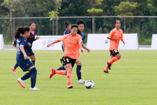 烈日下,双方的球员都大汗淋漓,但却没有一个人停下奔跑的脚步,队员们像草原上一匹匹脱缰的野马,为自己的梦想奔跑,来自海南女乙的17号球员王慧敏接二连三的进球,成为了本场比赛的焦点。