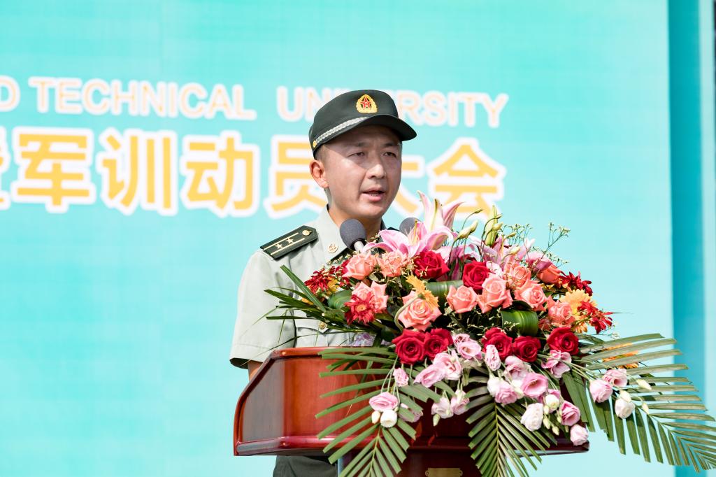 晋江市武装部副部长胡苏楠做军训动员讲话