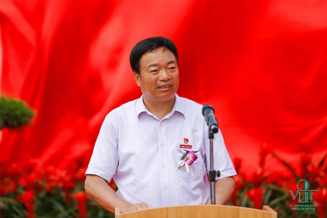 晋江市人民政府黄少伟副市长讲话,他代表晋江市委市政府对泉州职业技术大学的成立表示热烈祝贺。学校辛勤耕耘33年,培养具有晋江基因的创业型人才和社会急需的高层次专业技术技能人才,深受社会欢迎。希望学校认真贯彻落实各级部门关于职业教育的新部署和新要求,不忘初心,牢记使命,切实发挥本科层次职业教育试点学校的引领和示范作用,为泉州、晋江经济社会发展做出更大贡献。