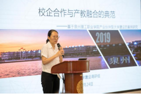 王亚克博士代表第一组作《校企合作与产教融合的典范 ——基于泉州理工职业学院产业伙伴型大学建设的案例研究》的汇报