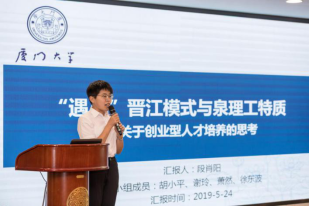 段肖阳博士代表第二组作《“遇见”晋江模式与泉理工特质 ——关于创业型人才培养的思考》的汇报