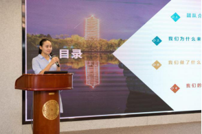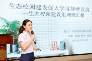廖霞博士代表第三组作《生态校园建设促大学可持续发展》的汇报