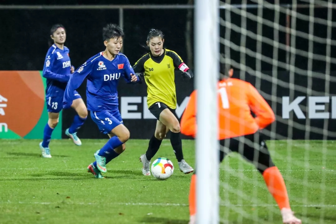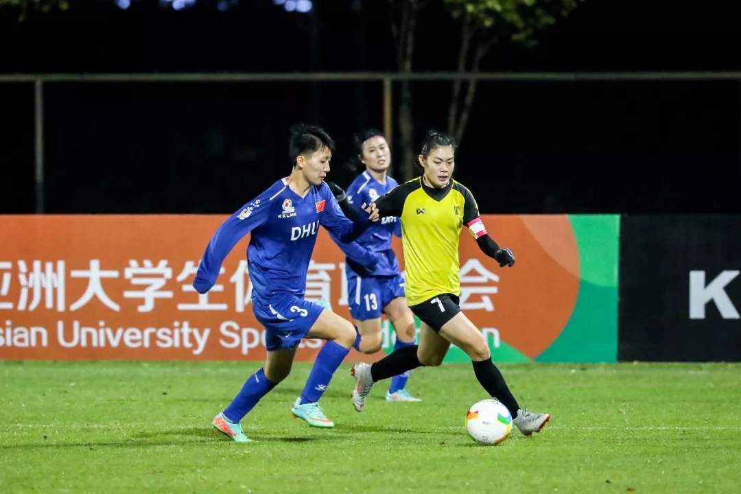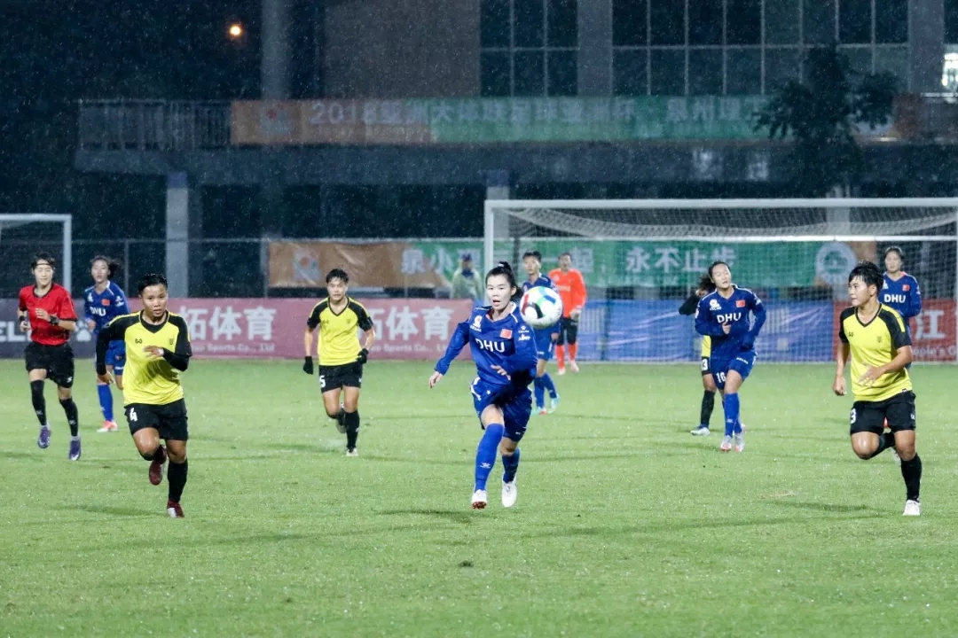 11月1日晚,2018亚洲大体联足球亚洲杯女子组小组赛首日,东华大学队(中国)对阵亚洲学者大学队(泰国)的比赛在泉州理工学院足球场进行。