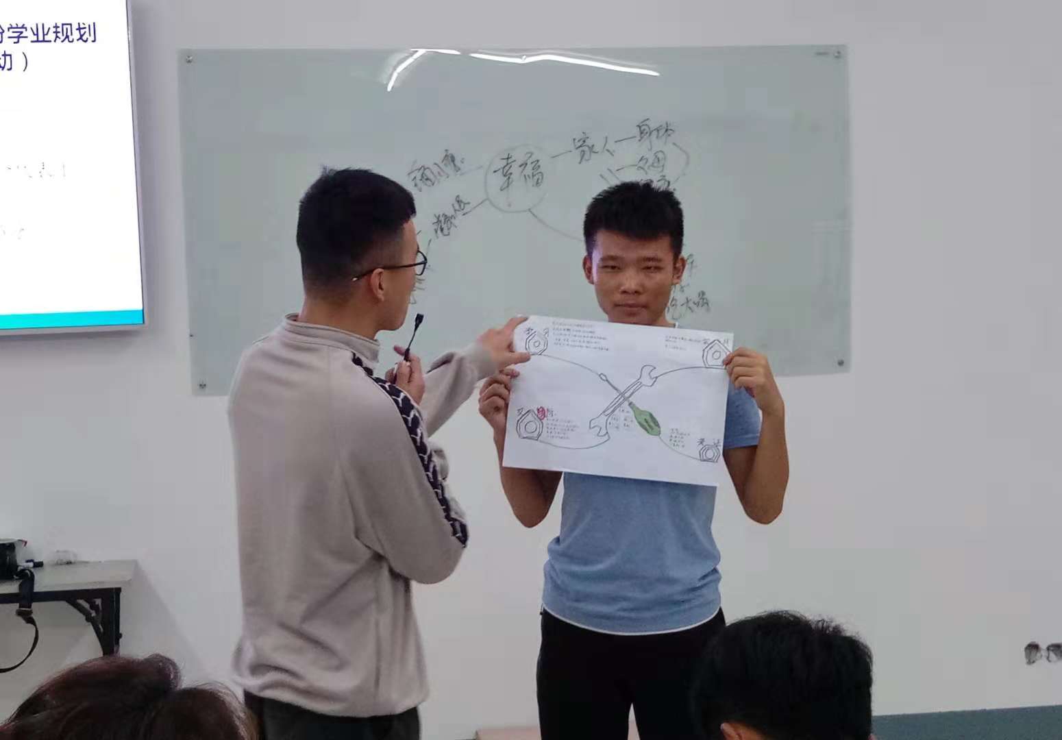 林老师首先分析上节课学生提交的学业规划,说明“思维导图+数据说=学业规划”的共性问题,接着从什么是思维导图、为什么要用思维导图、绘制思维导图有什么方式以及软件等方面进行详细讲解,课堂氛围好,同学们积极地参与其中。