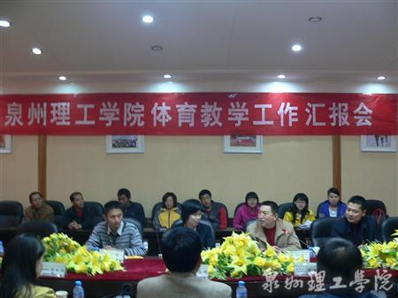在汇报会上,苏志明向检查组介绍了学校的基本情况和体育教学的总体情况。检查组通过听取汇报、实地考察、查阅资料、观摩公开课、与学生座谈等形式,对学校体育教学工作进行全面检查与指导。专家组在反馈意见中充分肯定了我校体育教学工作在领导重视、创新理念、选项教育、经费投入、学生体质测试、学生体育社团组织活动等方面取得的成效,特别是在开展群体活动、竞赛方面有不少亮点,并就加强体育教研室建设、提高体育教学教研能力、加强学生体育运动安全教育以及规范教案编写和课堂教学等常规工作管理等方面提出指导性意见。