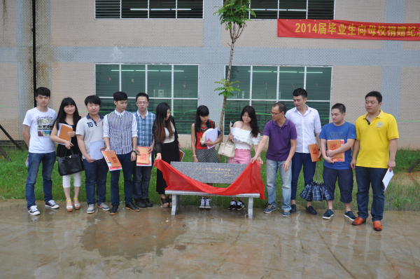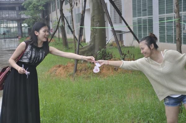 此次捐树,我校五个系各捐1棵,另外,我校名誉校长苏志明与政府督导专员曾文斗研究员各捐赠1棵。在赠树(椅)仪式上,同学们亲手制作的心形小卡片写上满满的祝福,“祝理工明天更好”、“告别了,我最美丽的校园”、“感谢老师的恩情”……一句句最真挚的祝福被写进小卡片里,并亲手系在树上。