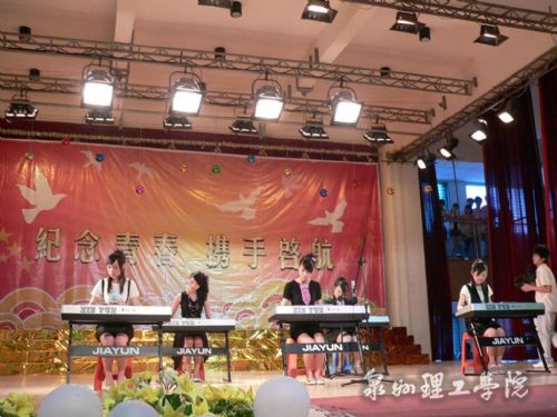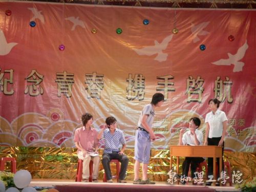 在典礼后举行的毕业欢送会上,校艺术团的同学们以自己的精彩演出为毕业生献出了临别的一份厚礼,表演内容丰富多彩,包括古典舞、校园歌曲串烧、小品、电子琴演奏、爵士舞、乐队表演等,最后,欢送会在艺术团吴旭青老师的歌声中圆满落幕。