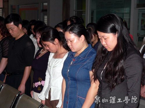 老师组织举行集体默哀仪式,其他师生员工则停止一切工作、学习和活动,聚集在校办公大厅默哀。