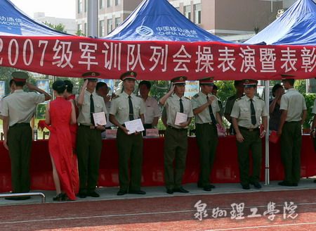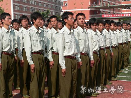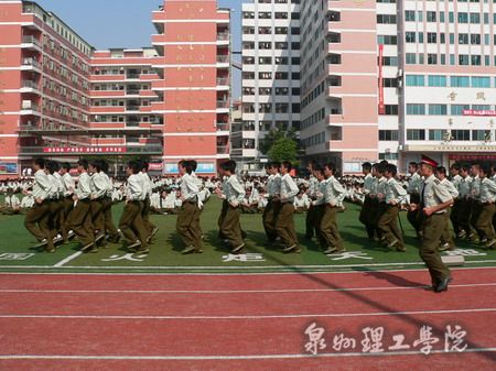 泉州理工学院2007级新生军训从95日开始,在为期9天的军训时间里,全体新生顶风雨、冒酷暑,严格要求,刻苦训练,圆满完成各军事项目的训练任务,磨炼了坚强意志,培养了良好的组织纪律观念和集体主义精神,为今后的大学生活奠定了坚实基础。