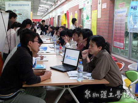 由泉州理工学院就业指导中心主办,好工作人才网、校创业协会协办的泉州理工学院2008届毕业生供需见面会11月13日上午在泉州理工学院举行。近120家用人单位前来招贤纳士,其中不乏沃尔玛、麦德龙、中国联通、泉州酒店、中国人寿、中企动力、德尔惠等知名企业,本次招聘会共提供1320个工作岗位,吸引了校内外毕业生数千名前来求职。泉州理工学院就业指导中心及各系负责就业、实