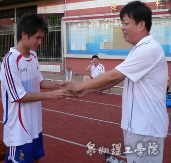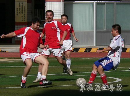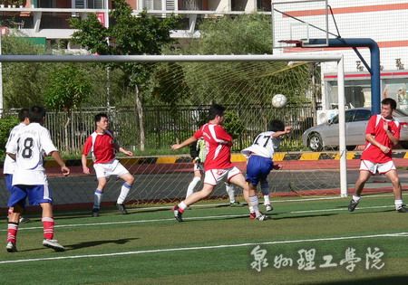 7月1日下午,泉州理工学院男子足球队在“理工杯”泉州市首届九人制足球联赛最后一轮比赛中,以5:3战胜泉州业余足球劲旅“欢乐车友”俱乐部队,从而以6胜1负的战绩捧得本届联赛冠军,泉州理工学院队的李赛钦以11个进球荣获“最佳射手”,为本届联赛划上了一个圆满句号。