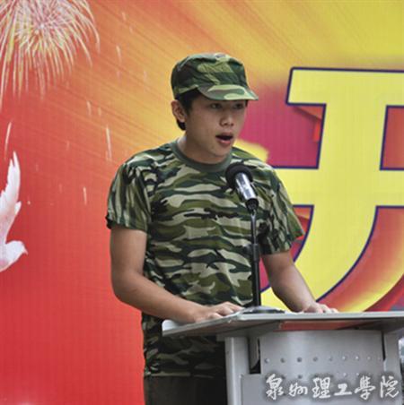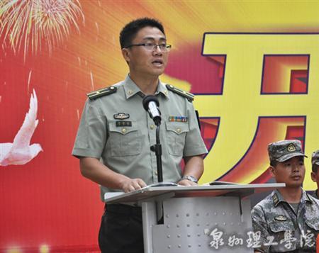 9月12日上午,泉州理工学院举行2013级新生军训动员大会。中国人民解放军 73142部队政治处副主任、军训团团长胡培金少校、 教导员刘小毛少校、学校名誉校长苏志明、副校长于雷、副校长庄文瑞、党委副书记黄志梅出席。38名参训教官、各系党支部书记、新生辅导员、班主任和2013级1700多名新生参加大会。