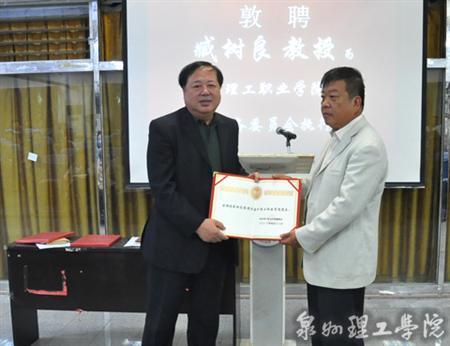 4月28日晚,泉州理工学院新任领导敦聘仪式于思恩楼3A报告厅举行。副董事长吴滨如代表董事会宣读了董事会决议,决定聘任原院长苏志明为名誉院长,聘任原辽宁石油化工大学党委书记臧树良教授为泉州理工学院院长。