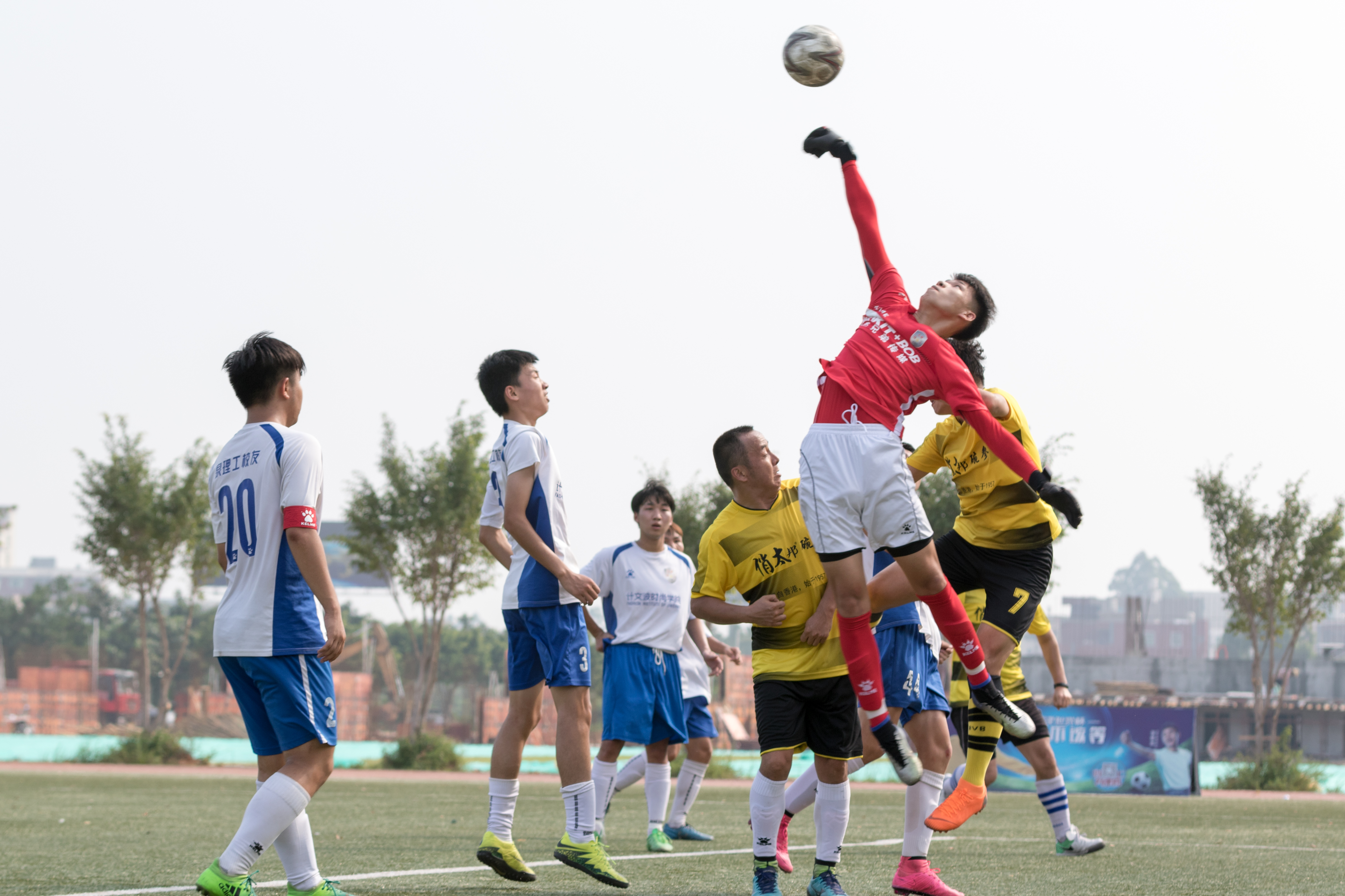 但比赛有时候也需要运气,第37分钟理工10号刘耀龙一脚长传转移到禁区,门前的队长11号大建叔不等皮球落地,轻巧的小角度垫射破门。泉理工校友队1比0领先对手,僵局就此被打破!
