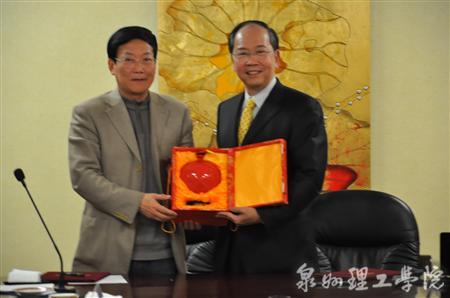 会上,亚洲大学副校长彭作奎教授及招生委员会副主任黄万传教授给大家介绍了亚洲大学的基本情况及办学特色等,领导们还针对两岸高校的具体合作方式展开了深入热烈的讨论。最后,亚洲大学与到场的 11所高校校长签署了《学术交流备忘录》,我校校长苏志明教授还与台湾客人交换了纪念品,彭作奎副校长热情邀请我校领导及学生到台湾访问交流。