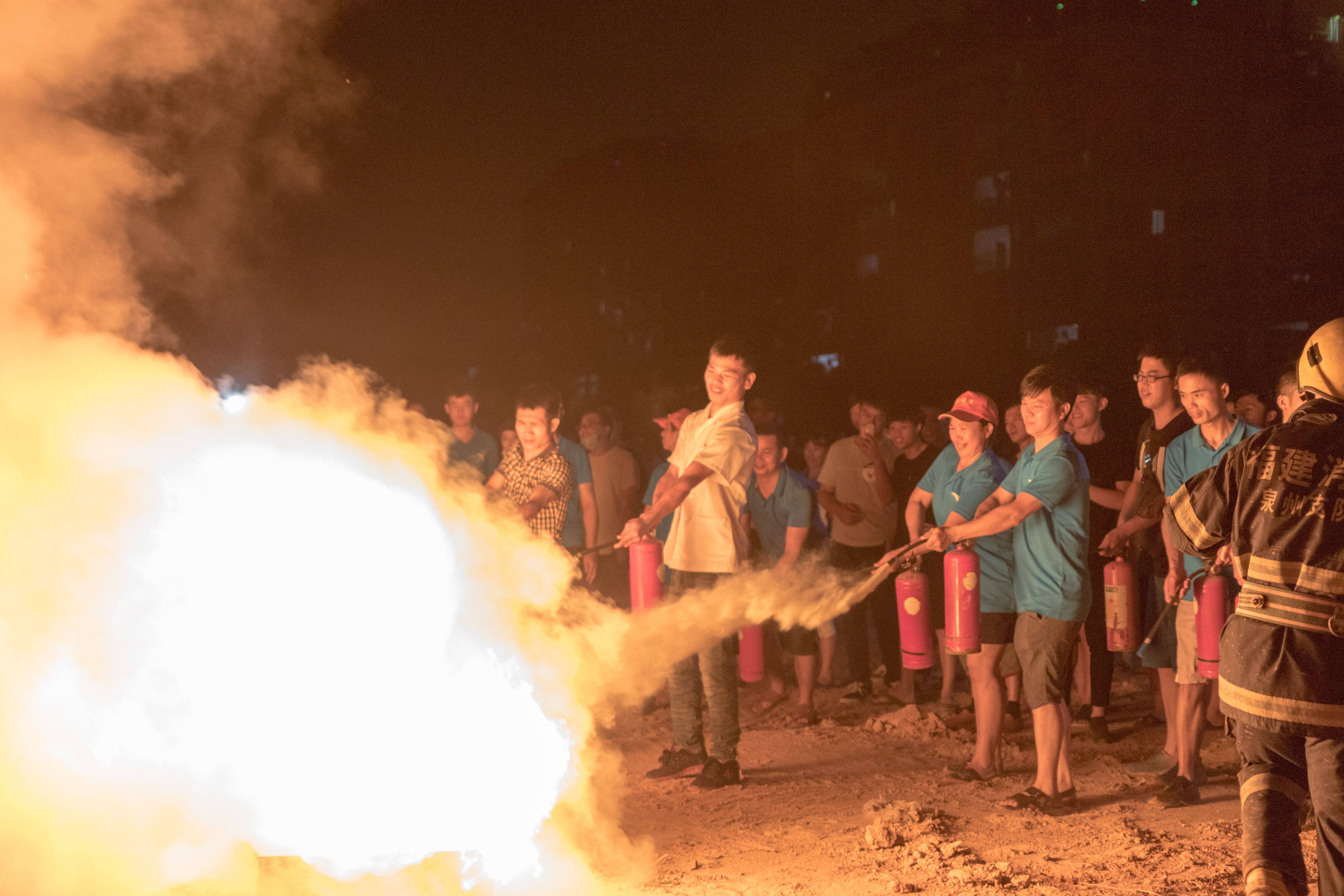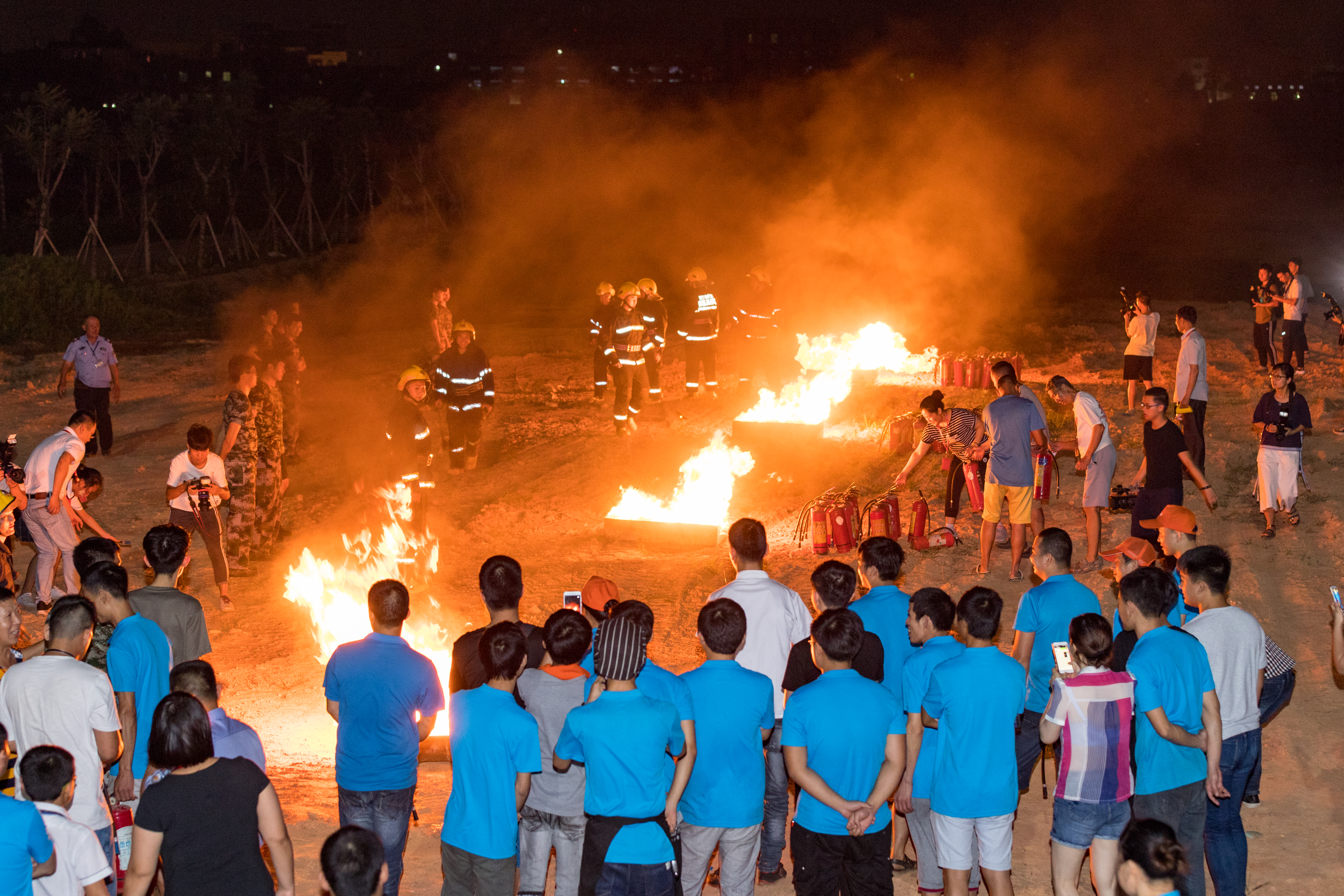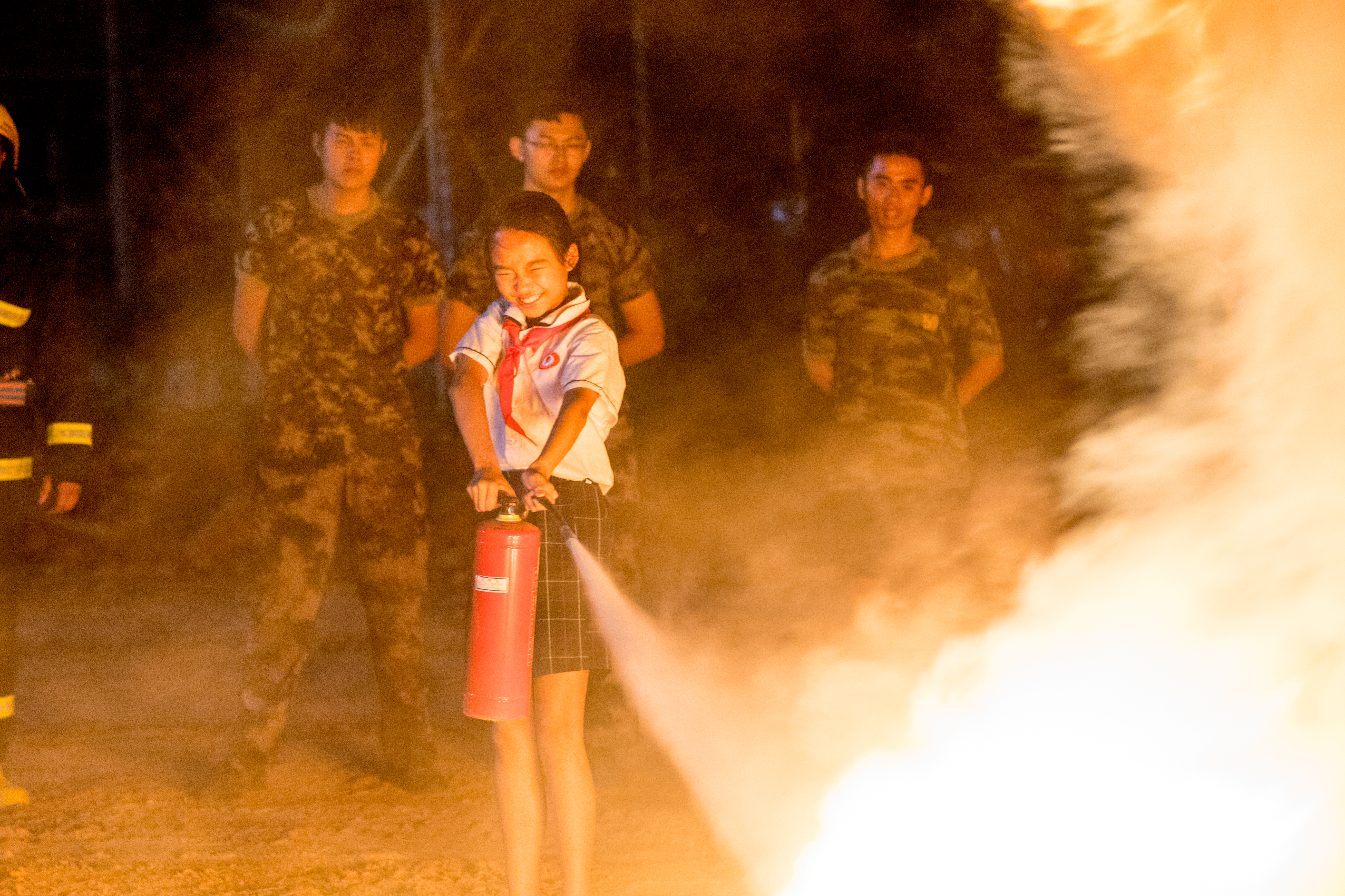 在近1小时的逼真模拟环境中,全体师生进行了地震、火灾背景下的疏散逃生演练与水带铺设演示、实地灭火等项目。消防官兵、医护人员快速反应,展示了侦查火情、利用消防设备实施灭火、紧急救治和转运伤员等应急救援行动。