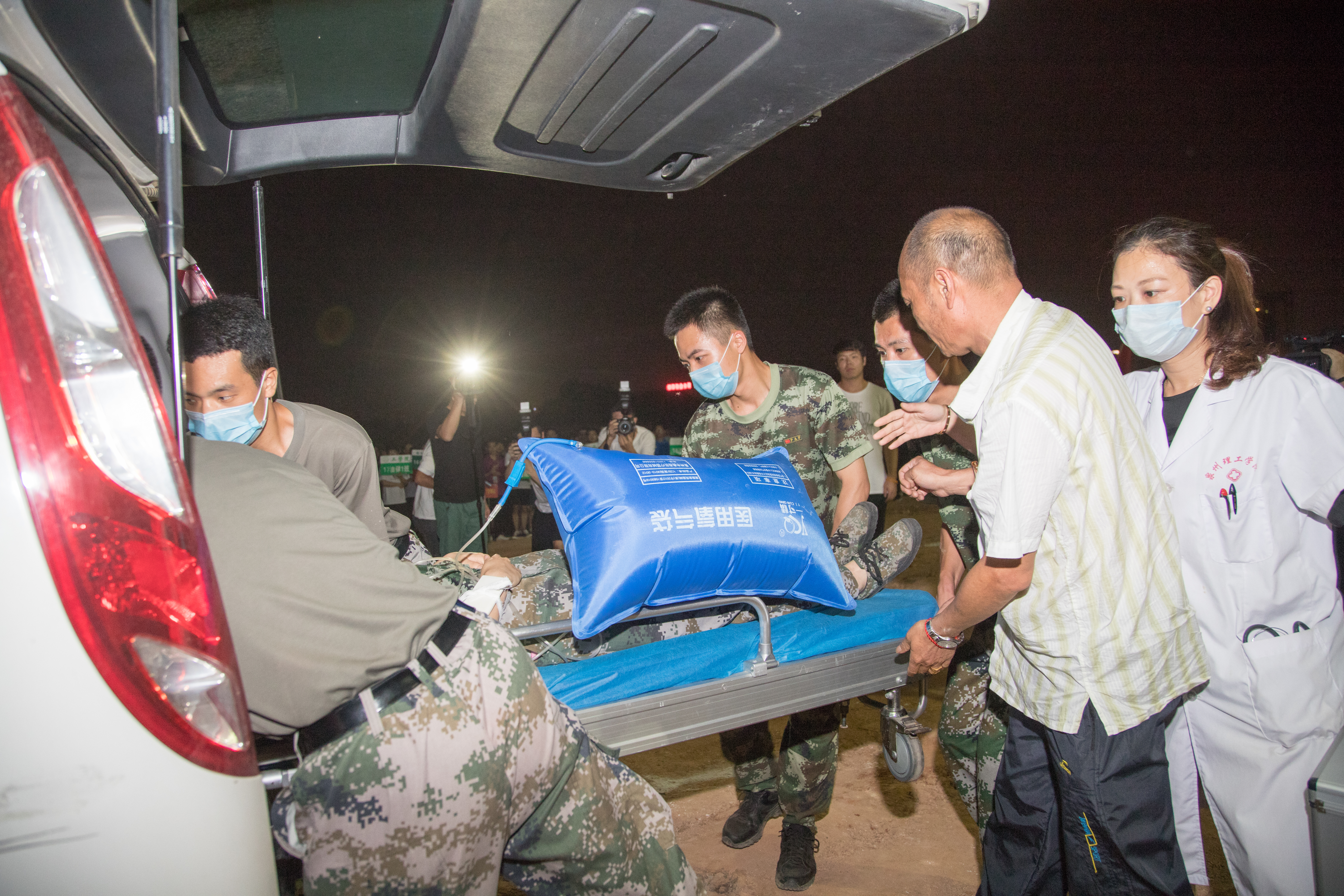 紧接着,防震减灾应急避险疏通演练指挥部接到报警,有1名学生意外受伤,消防人员立即前往事发地点将伤员抬到演练区域进行现场抢救固定包扎,并迅速运送伤员到医院抢救。