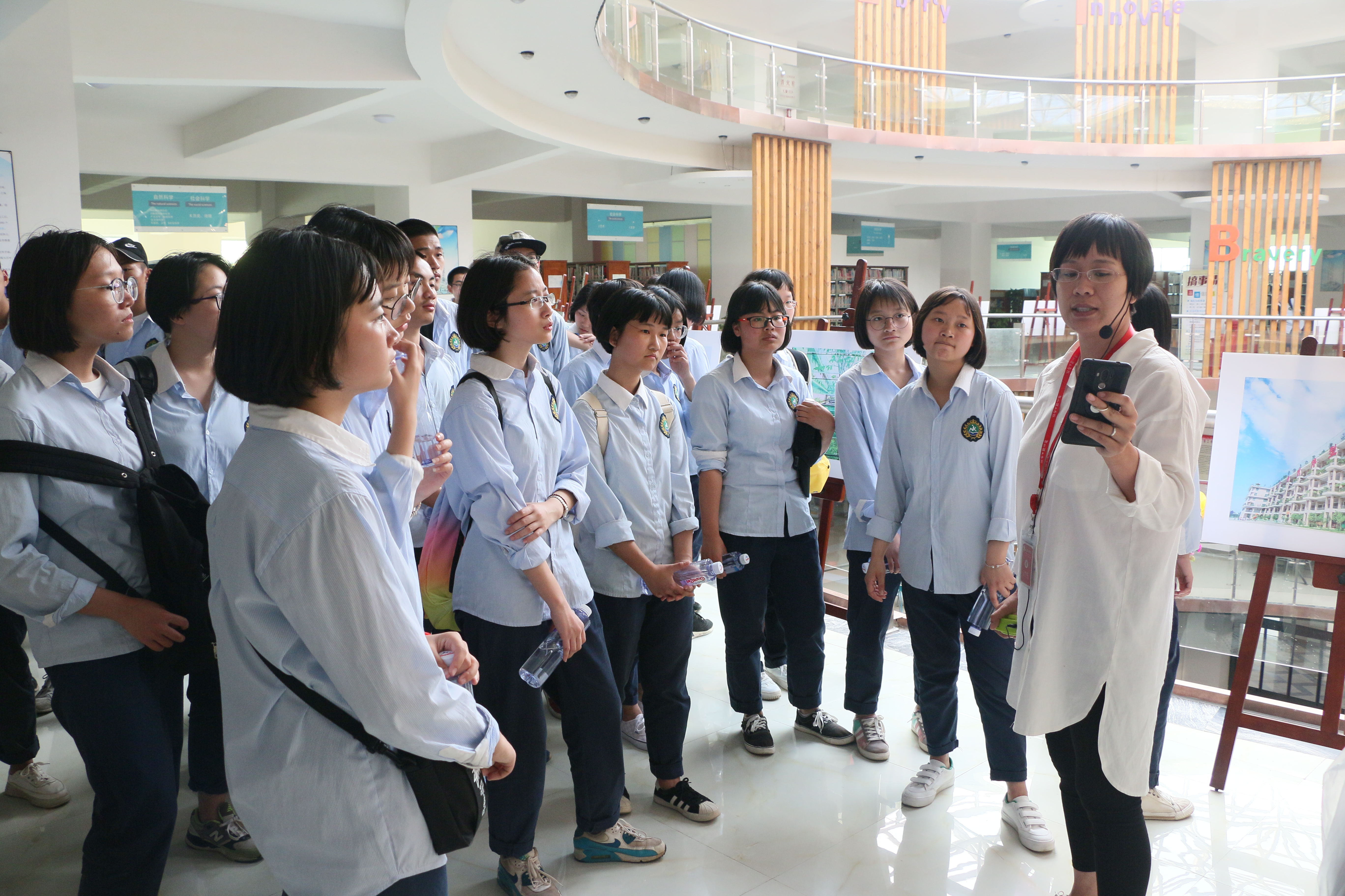 4月3日,我校组织开展校园开放日活动,来自内坑中学的500多名师生到校参观。参观路线分别以我校特色专业群汽车专业群、智能制造专业群、能源专业群、绿色建筑专业群、数字媒体专业群、商科专业群、时尚学院专业群为参观主题。不少学生在参观过程中都纷纷表示,学校的生态绿化建筑很神奇,很有特色。