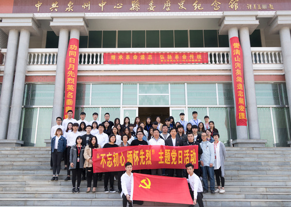 在内坑革命烈士陵园前,师生党员代表迈着整齐划一的步伐走向烈士纪念碑,向革命烈士敬献花圈;聆听了烈士们的先进事迹,全体党员以默哀的方式来寄托哀思,深情缅怀悼念革命烈士。随后,全体党员前往中共泉州中心县委历史纪念馆参观,感悟英雄事迹。
