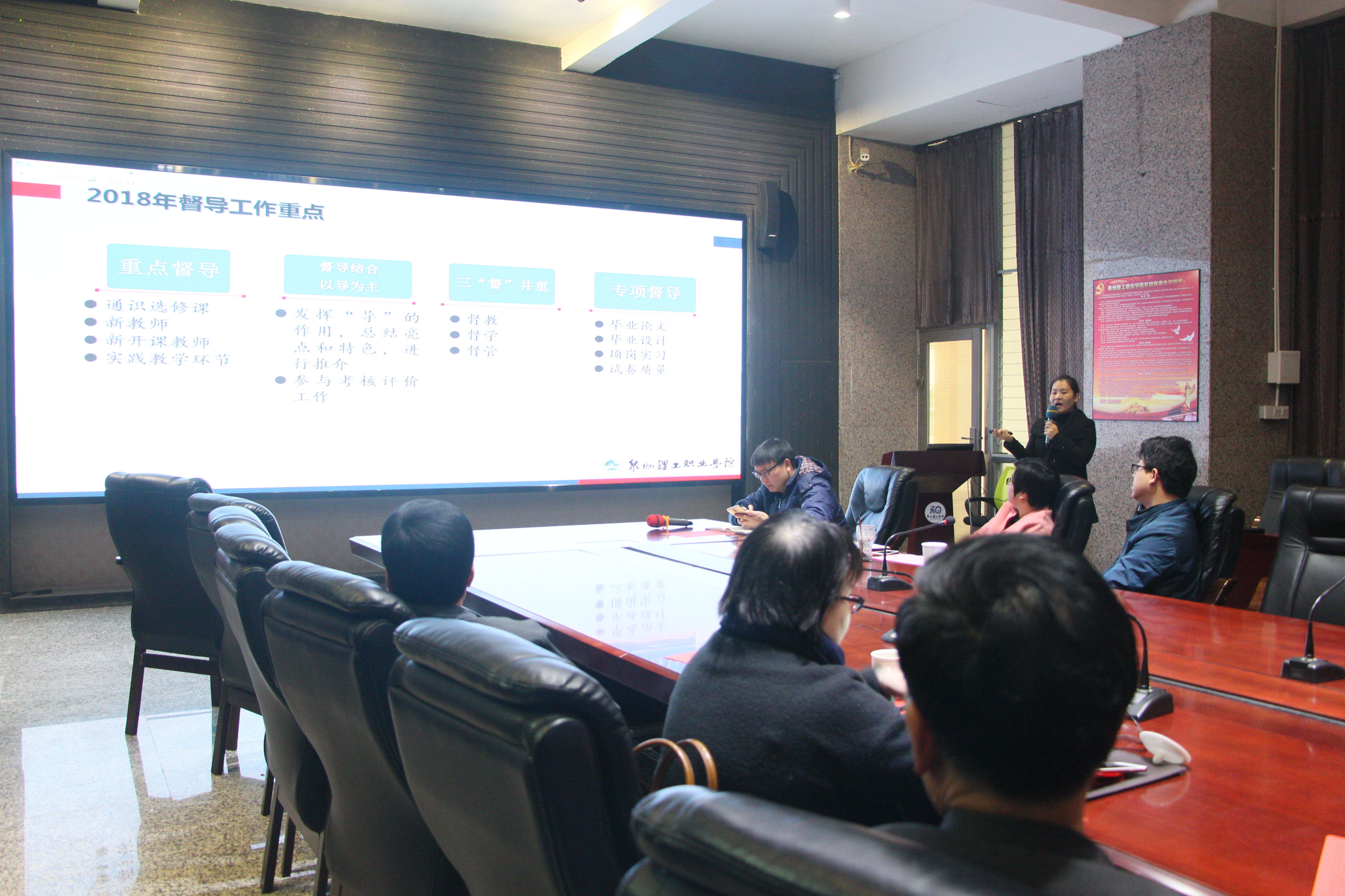 1月23日,六个教学单位进行述职。工学院2017年工作计划共16大项71小项,其中已完成的有51项,进行中的有15项。在科研创新方面,举办多场学术讲座有,20项科研成果在福建省6.18项目推介会亮相,编制3项实验工艺流程,研发智能控制百叶窗,并成功研发沼气提纯装置使用于改装的观光车。在成果及亮点方面,2017年获批市级及以上科研创新立项10项,横向课题及自研课题8项,省级及以上质量工程建设项目6项,发明专利9项,获得省级以上10项、校级17项奖项。