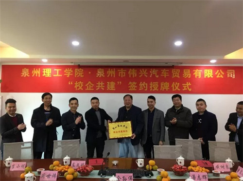 2017年12月21日,我校校长臧树良、党委书记林其天、副校长庄文瑞、工学院党总支书记吴茶水等一行6人前往伟兴汽车贸易有限公司考察并进行签约,伟兴汽车贸易有限公司余孙伟、潘志辉、周世炜三位创始投资人带领骨干员工对我校党政领导进行隆重的接待。